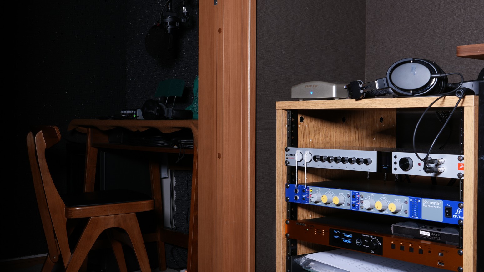 エンジニアとの会話は、ヘッドフォンを通して可能。いちいちドアを開ける必要はありません。